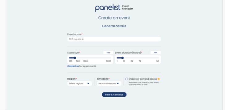 Public Events are best suited for fully virtual events, so you won’t need to be particular with location settings while creating these. As live events allow for anyone with an internet connection and Panelist account to attend, it’s probably best that you focus on selecting a well-thought out event date and time to cater to different time zones across your attendance list.