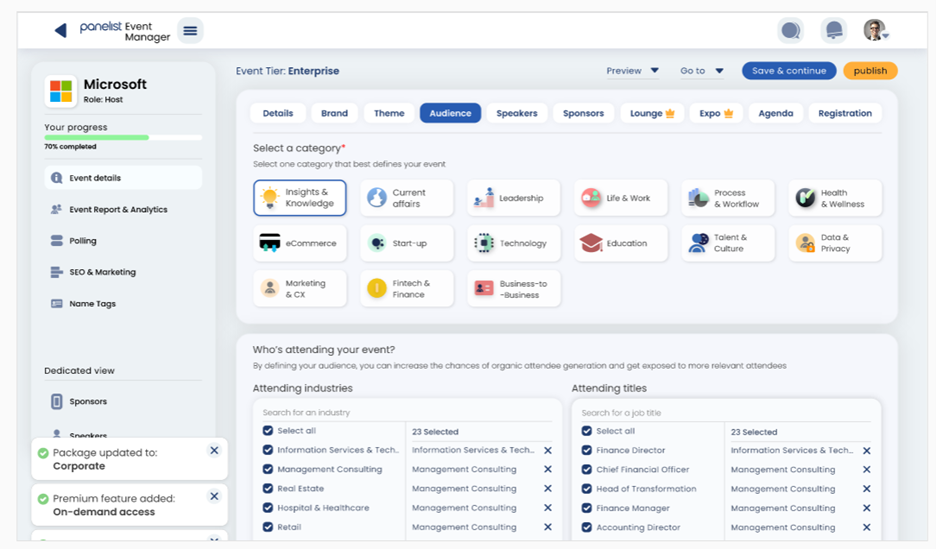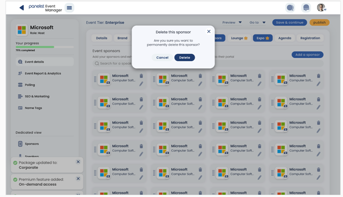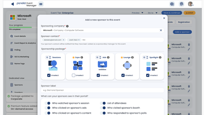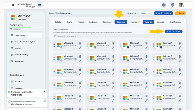It may be a virtual event, but this shouldn’t stop you from inviting relevant sponsors to play an active part in it. Panelist events provide the ability for you to invite leading companies from all over the world, to participate in specific event sponsorship roles.