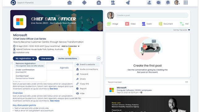 Panelist provides a hub for keeping industry experts and professionals virtually connected, regardless of where they are located. It may be a virtual space, but it still retains a highly social focus when it comes to encouraging connections across different industries and territories. Whenever you’re on an event page, simply click the ‘Invite connections’ button to bring up a list of contacts that you can invite to the event.