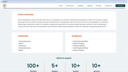 You can expect your Panelist Event Website to look just like your Event Page does. It features all the event information you would have entered while creating your event, using the Event Manager.